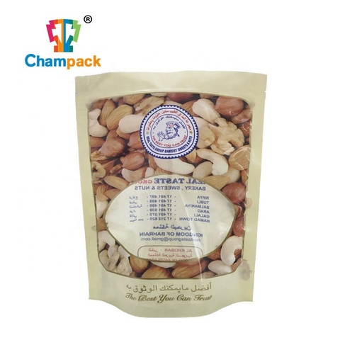 שקוף מזון כיתה עומד רוכסן פאוץ עם חלון עבור חטיפים ובוטנים